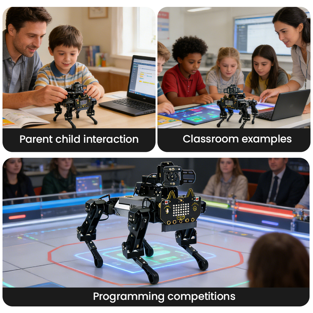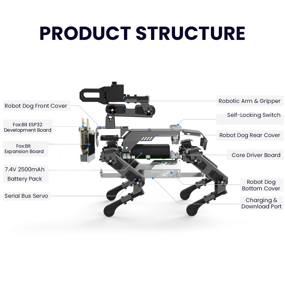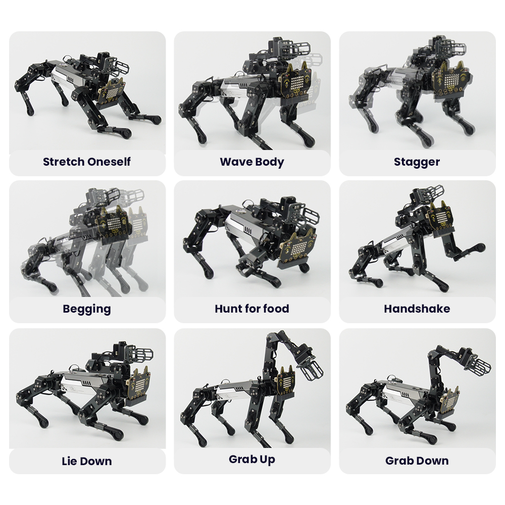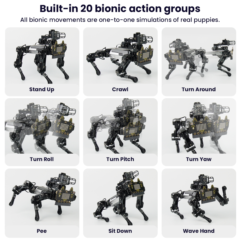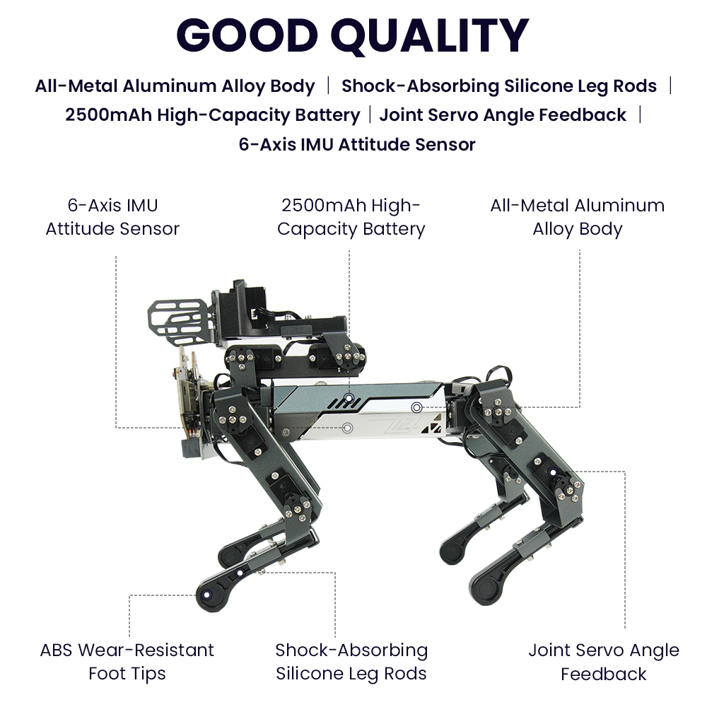 Self-balancing : The built-in IMU (Inertial Measurement Unit) ensures the stability of the robot dog during movements.